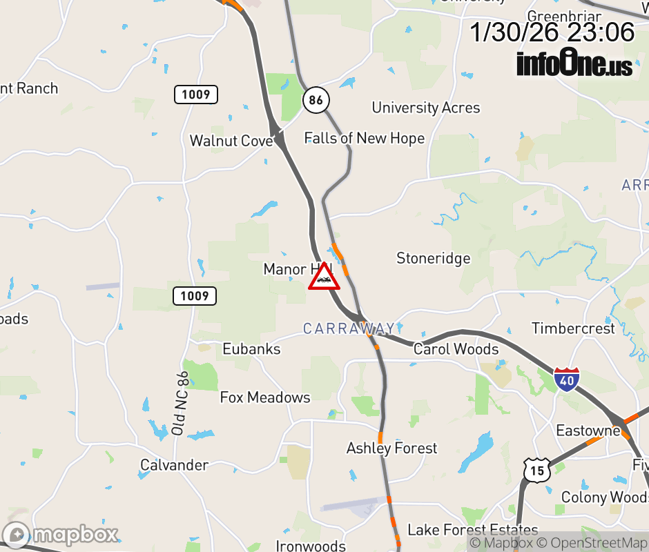 The right shoulder is closed before Exit 266 (NC 86). ![]() |