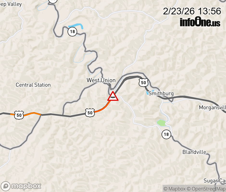 Vehicle Crash on US-50/WV-18. The northbound road is closed. ![]() |