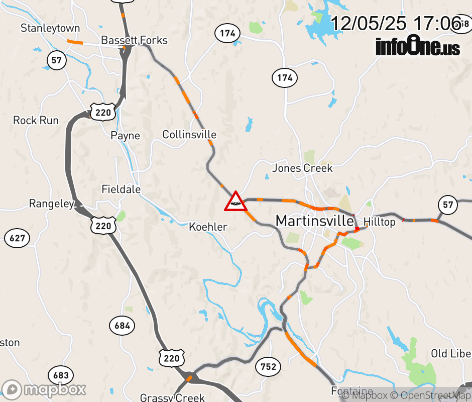 On BUS US-220 South in the County of Henry, in the vicinity of Commonwealth Blvd, motorists can expect delays due to a vehicle crash. Lane closures exist. ![]() |
