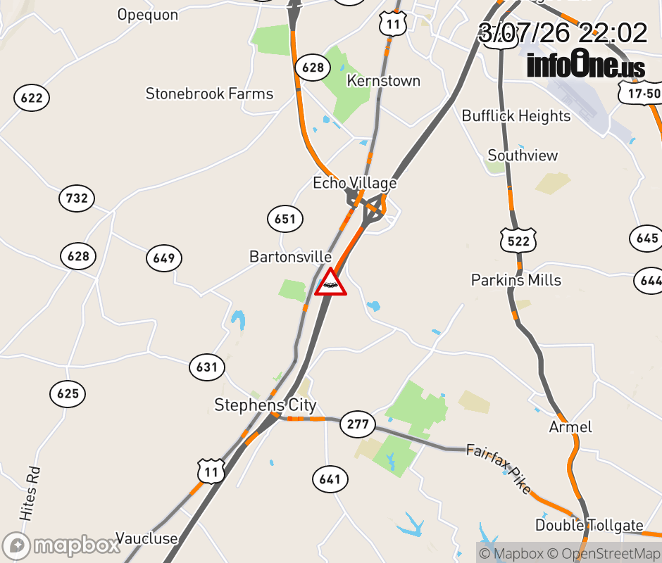 On I-81 South at mile marker 309 in the County of Frederick, motorists can expect delays due to a vehicle crash. Updated: Sat 3/7/26 10:02 PM EST ![]() Updated: Sat 3/7/26 10:02 PM EST |