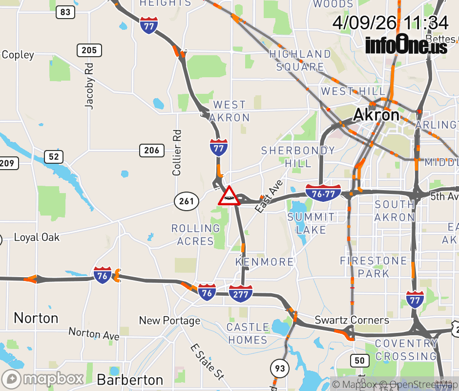The right lane is blocked on I-77 North at I-76, due to a crash. ![]() |