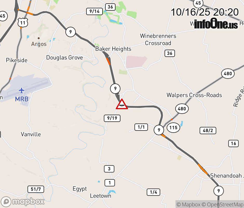 Vehicle Crash on WV-9 & CR-36/1 (Short Road). Updated: Thu 10/16/25 8:20 PM EDT ![]() Updated: Thu 10/16/25 8:20 PM EDT |