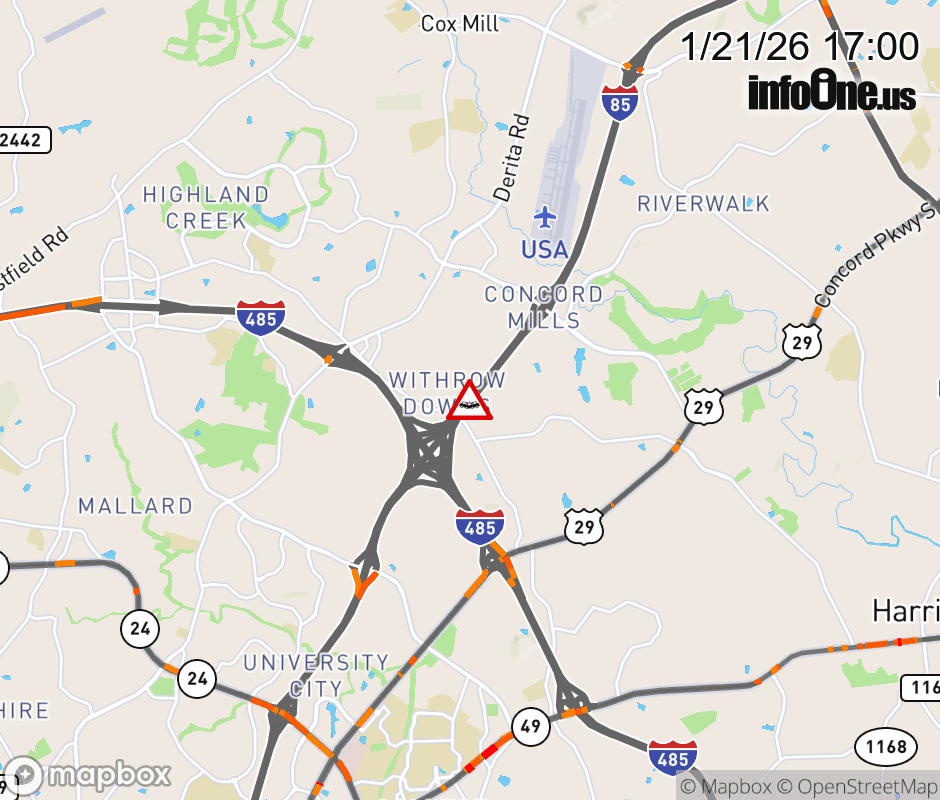 The left ramp lane is closed at Exit 48 (I-485). ![]() |