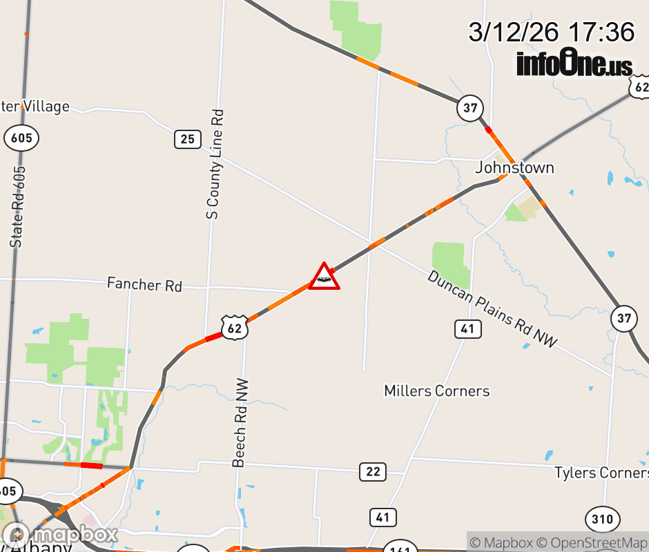 Expect lane closures on US-62 West at Township Hwy 86, due to a crash. ![]() |