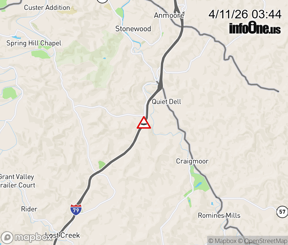 Canceled 4/11/26 5:04 AM Location: I-79 at MM 114.0, WV Accident.