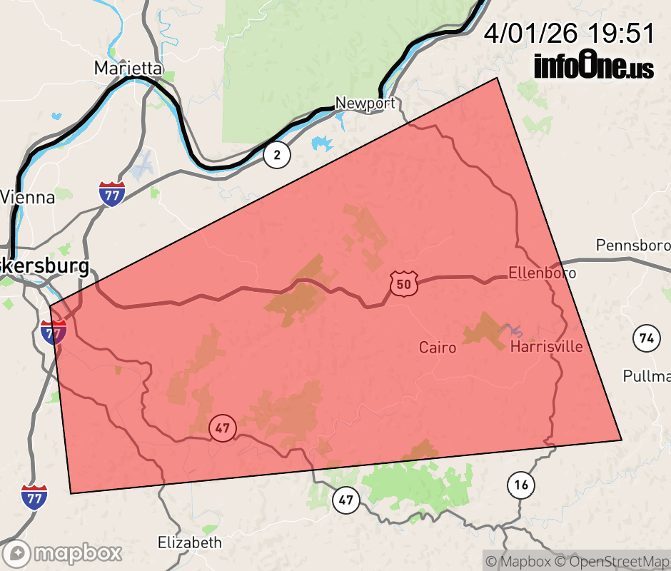 Canceled 4/1/26 8:15 PM Special Weather Statement issued April 1 at 7:49PM EDT by NWS Charleston WV At 749 PM EDT, Doppler radar was tracking a strong thunderstorm near Mineralwells, or 7 miles southeast of Parkersburg, moving east at 40 mph. HAZARD...Wind gusts up to 40 mph and half inch hail. SOURCE...Radar indicated. IMPACT...Gusty winds could knock down tree limbs and blow around unsecured objects. Minor hail damage to vegetation is possible. Locations impacted include... Parkersburg, Harrisville, Mineralwells, North Bend State Park, Ellenboro, Cairo, Nutter Farm, Walker, Maxwell, Petroleum, Schultz, Pike, Freeport, Davisville, Greencastle, and Highland. This includes the following highways... Interstate 77 in West Virginia between mile markers 171 and 175. Route 50 in West Virginia between mile markers 12 and 38. ![]() |