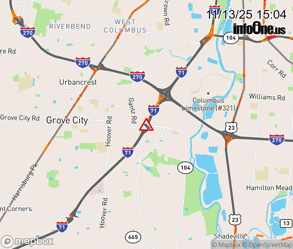 The right lane is blocked on I-71 South beyond Stringtown Rd, due to debris on roadway. Updated: Thu 11/13/25 3:04 PM EST ![]() |