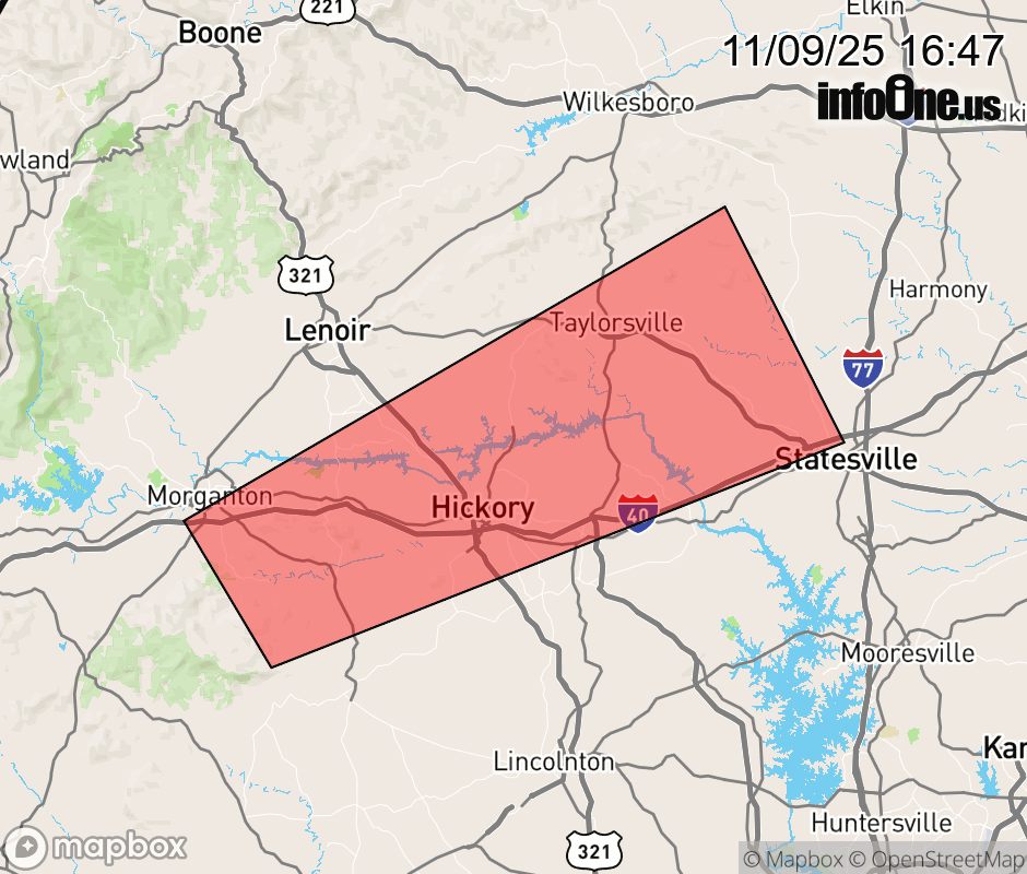 Canceled 11/9/25 5:15 PM Special Weather Statement issued November 9 at 4:45PM EST by NWS Greenville-Spartanburg SC At 444 PM EST, Doppler radar was tracking a strong thunderstorm near Hickory, or near Lake Hickory, moving northeast at 35 mph. HAZARD...Wind gusts up to 40 mph and pea size hail. SOURCE...Radar indicated. IMPACT...Gusty winds could knock down tree limbs and blow around unsecured objects. Minor hail damage to outdoor objects is possible. Locations impacted include... Hickory, Taylorsville, Morganton, Statesville, Newton, St. Stephens, Conover, Longview, Sawmills, and Granite Falls. ![]() |