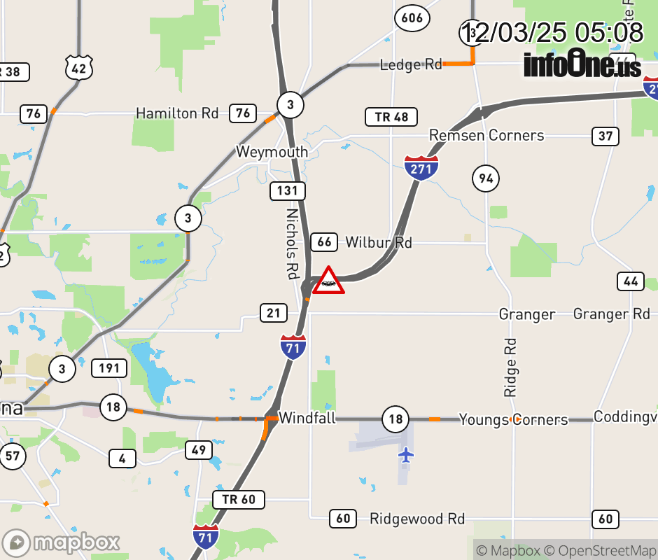 I-271 CLOSED in BOTH DIRECTIONS from I-77 North to I-71 South (MM: 10.1), due to crash. Use alternate route. ![]() |