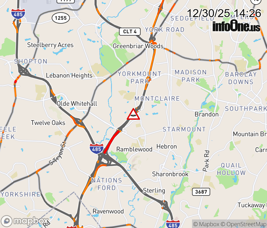 The right shoulder is closed at Exit 4 (Nations Ford Rd). Updated: Tue 12/30/25 2:26 PM EST ![]() Updated: Tue 12/30/25 2:26 PM EST |