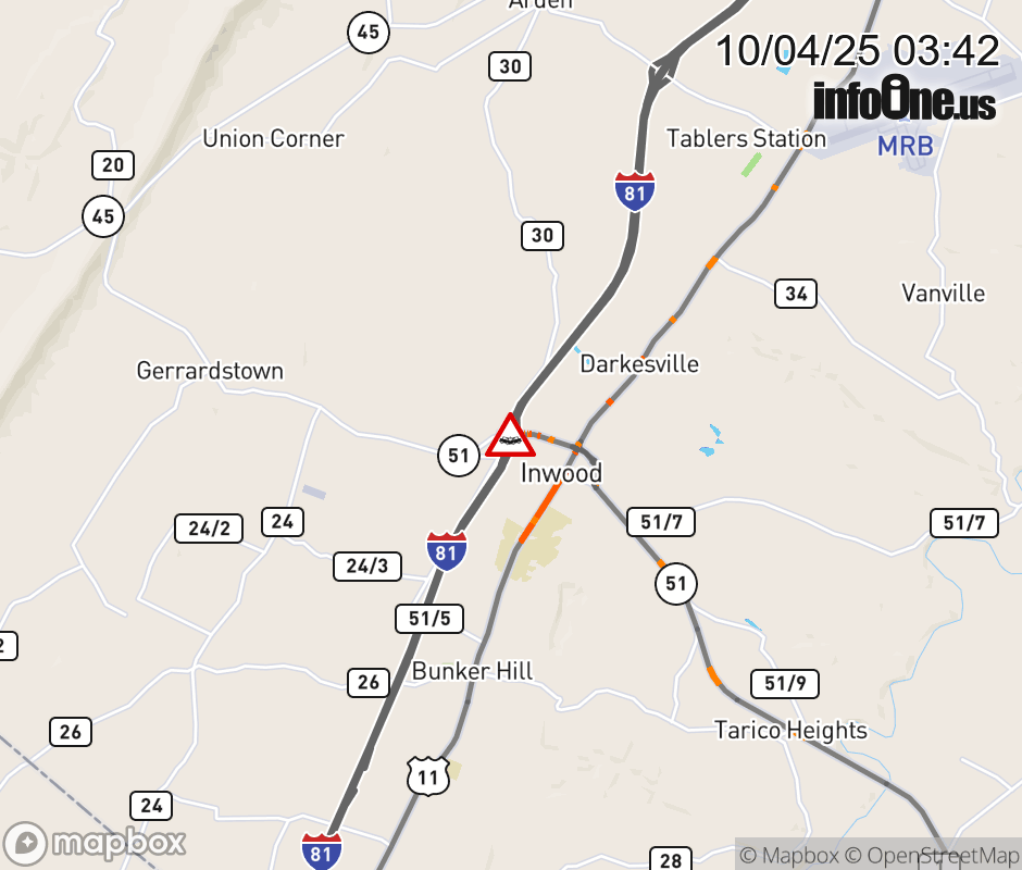 Canceled 10/4/25 3:50 AM Location: I-81 at MM 5.0, WV Accident.
