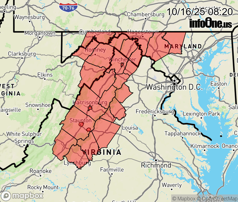 Canceled 10/16/25 12:23 PM Frost Advisory issued October 16 at 8:19AM EDT until October 17 at 9:00AM EDT by NWS Baltimore MD/Washington DC * WHAT... Temperatures as low as 31 will result in frost formation. * WHERE... Portions of north central and western Maryland, central, northwest, and western Virginia, and eastern and panhandle West Virginia. * WHEN... From 2 AM to 9 AM EDT Friday. * IMPACTS... Frost could harm sensitive outdoor vegetation. Sensitive outdoor plants may be killed if left uncovered. ![]() |