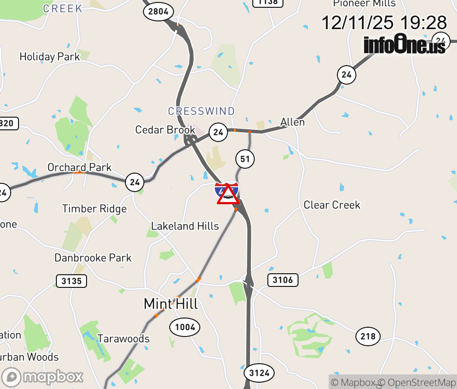 The right lane is closed at Exit 43 (NC-51). ![]() |