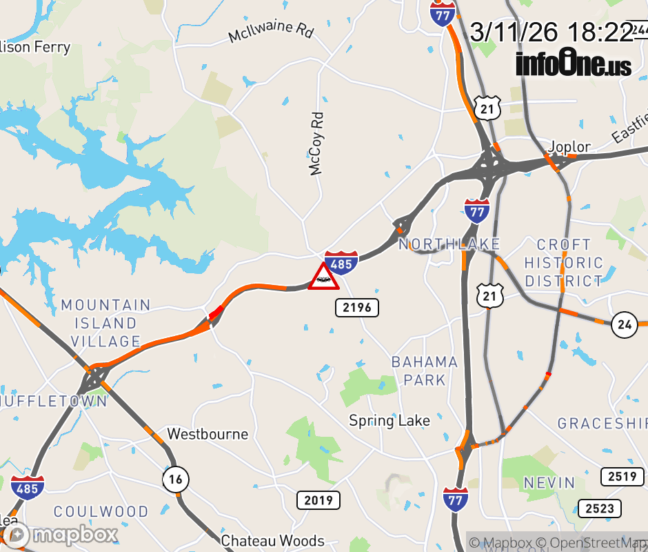 The left lane is closed past Exit 21 (W.W.T. Harris Blvd). ![]() |