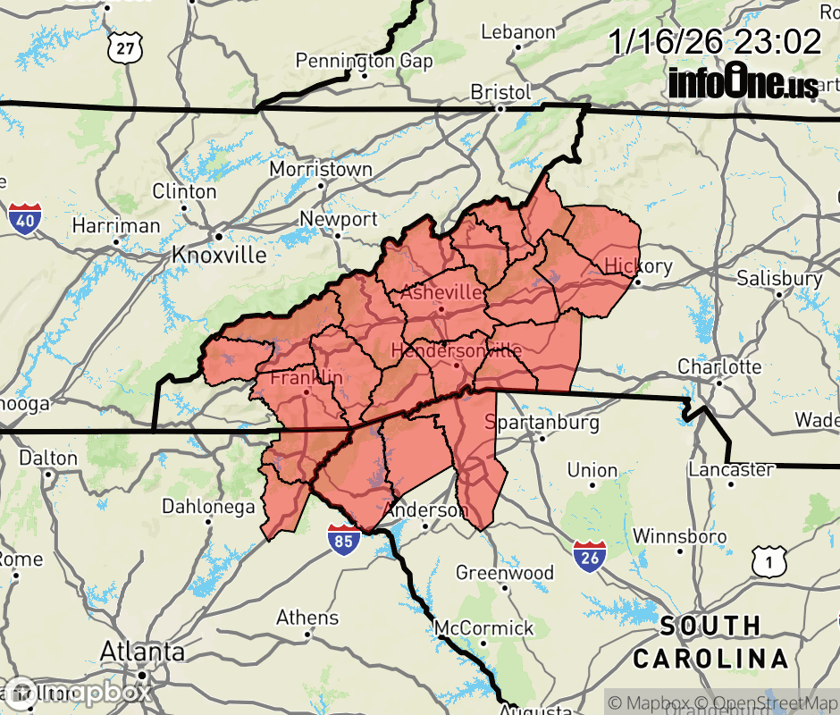 Canceled 1/17/26 8:00 AM Special Weather Statement issued January 16 at 11:01PM EST by NWS Greenville-Spartanburg SC A weakening band of precipitation will move into the mountains of the Carolinas and northeast Georgia after midnight. The precipitation will likely start out as a mix of snow, sleet, and freezing rain, but mostly change over to all snow above 3500 feet, possibly ending as freezing rain around daybreak. Mostly rain is expected in the the lower elevations, although areas of freezing rain are likely in valley locations closer to the continental divide. With temperatures hovering in the upper 20s to lower 30s, minor snow accumulations of 1 to 4 inches are expected above around 3500 feet. Spotty light ice accretions of less than a tenth of an inch are expected in the valleys and near the Blue Ridge Escarpment, mainly on elevated surfaces. While widespread travel difficulties are not anticipated due to warm road temperatures, some slick spots could develop on bridges and overpasses. Roads leading into the higher elevations of the Smokies and the Balsams could become snow covered for a few hours before sunrise. Clearing skies should allow temperatures to warm above freezing and thaw out most roads by midday Saturday. ![]() |