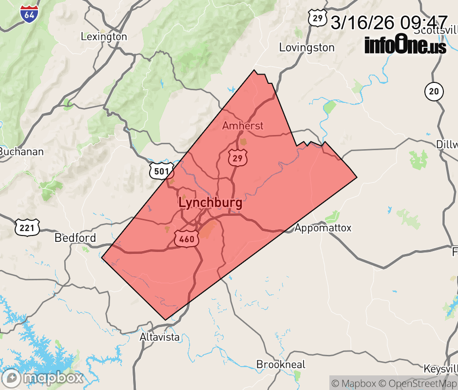 Canceled 3/16/26 10:15 AM Special Weather Statement issued March 16 at 9:46AM EDT by NWS Blacksburg VA At 945 AM EDT, the public reported a cluster of strong thunderstorms over Lynchburg, moving northeast at 60 mph. HAZARD...Wind gusts up to 40 mph. SOURCE...ASOS at Lynchburg Airport reported a wind gust of 39 mph. IMPACT...Gusty winds could knock down tree limbs and blow around unsecured objects. Locations impacted include... Lynchburg... Amherst... Bent Creek... Concord... Rustburg... Clifford... and Forest. ![]() |