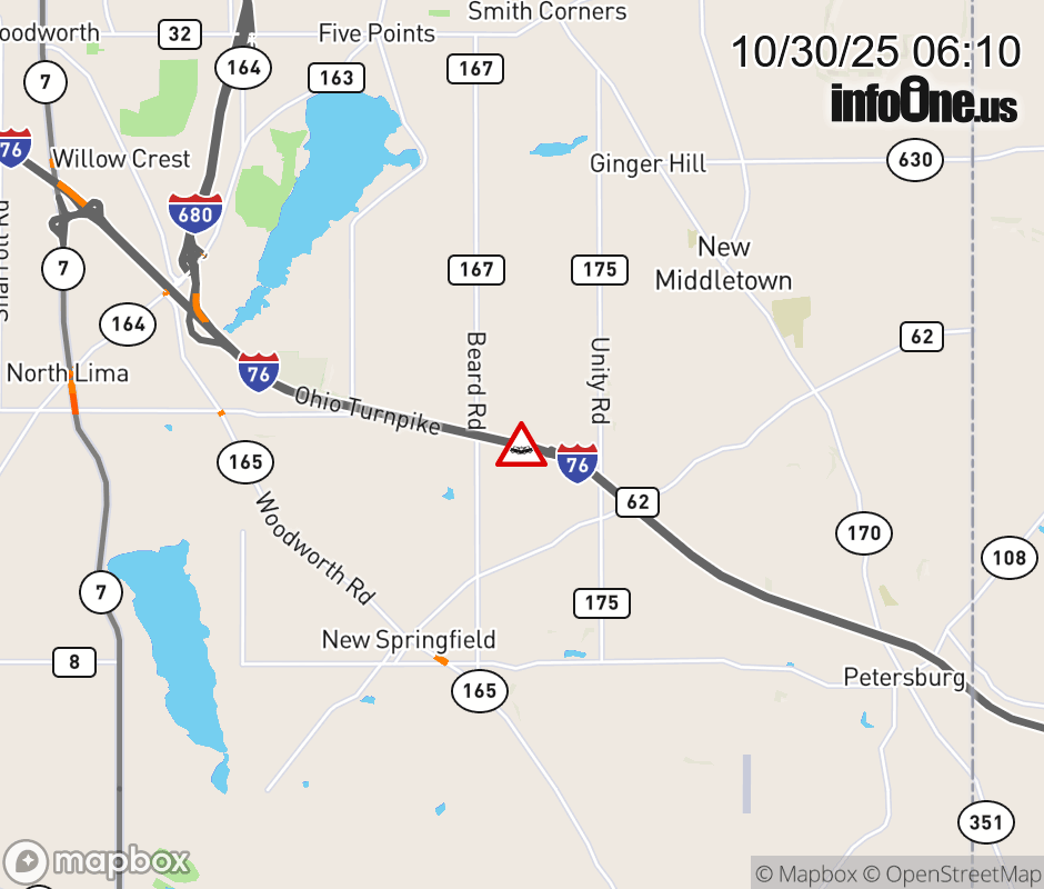 | Canceled 10/30/25 6:32 AM Location: I-76 West (Ohio Turnpike) W, OH Accident.