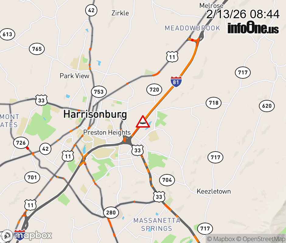 On I-81 at mile marker 248.2 in the County of Rockingham, motorists can expect delays due to a vehicle crash. The south right shoulder is closed. Traffic backups are approximately 3.0 miles. Updated: Fri 2/13/26 8:44 AM EST ![]() Updated: Fri 2/13/26 8:44 AM EST |