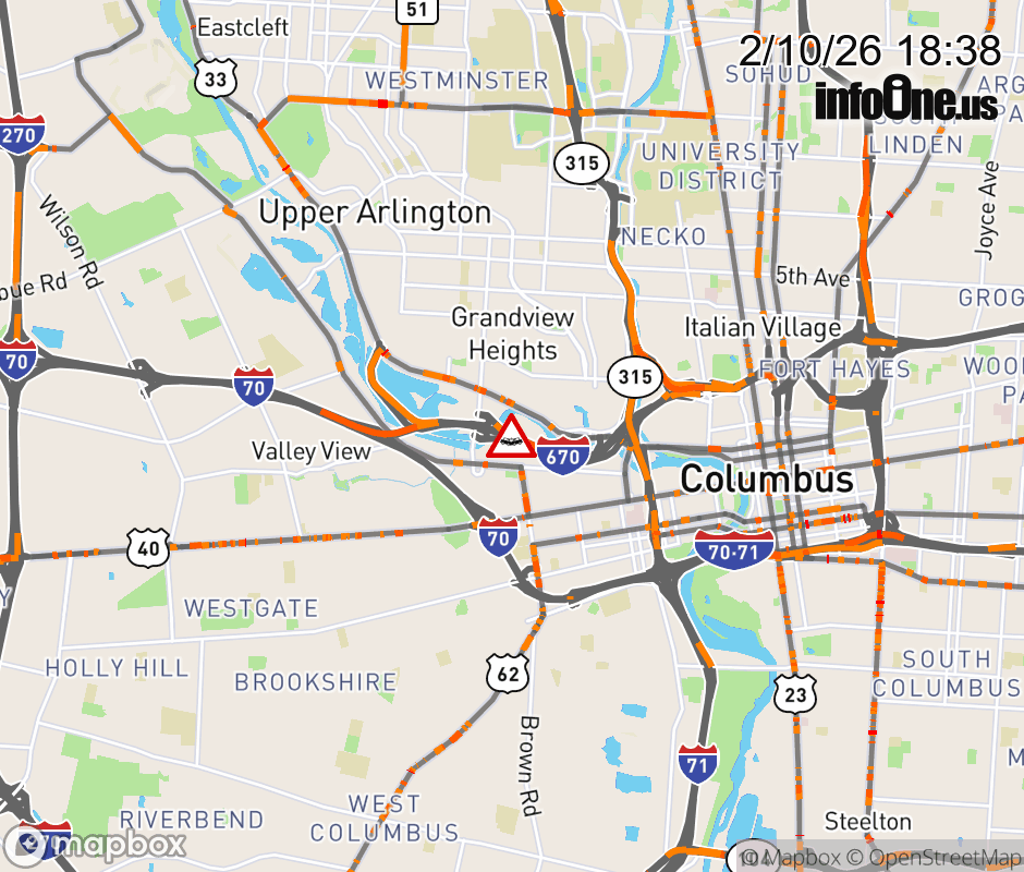The left shoulder is blocked on I-670 West at Grandview Ave, due to a crash. Updated: Tue 2/10/26 6:38 PM EST ![]() Updated: Tue 2/10/26 6:38 PM EST |