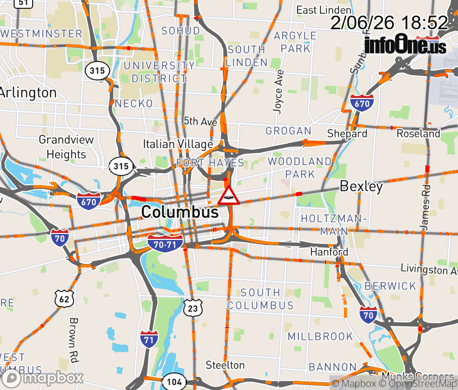 The right lane is closed on I-71 North beyond I-670 West, due to a crash. Updated: Fri 2/6/26 6:52 PM EST ![]() Updated: Fri 2/6/26 6:52 PM EST |