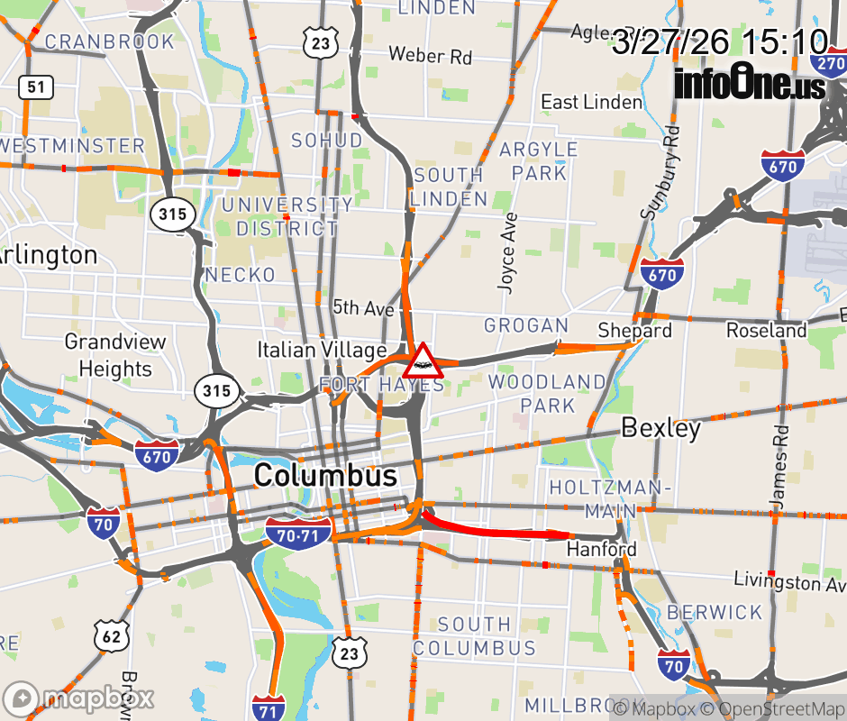 The left shoulder is blocked on I-670 West beyond I-71 North/South, due to a crash. ![]() |