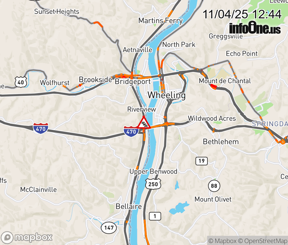 All lanes are closed on SR-7 South at I-470, due to debris on roadway. ![]() |