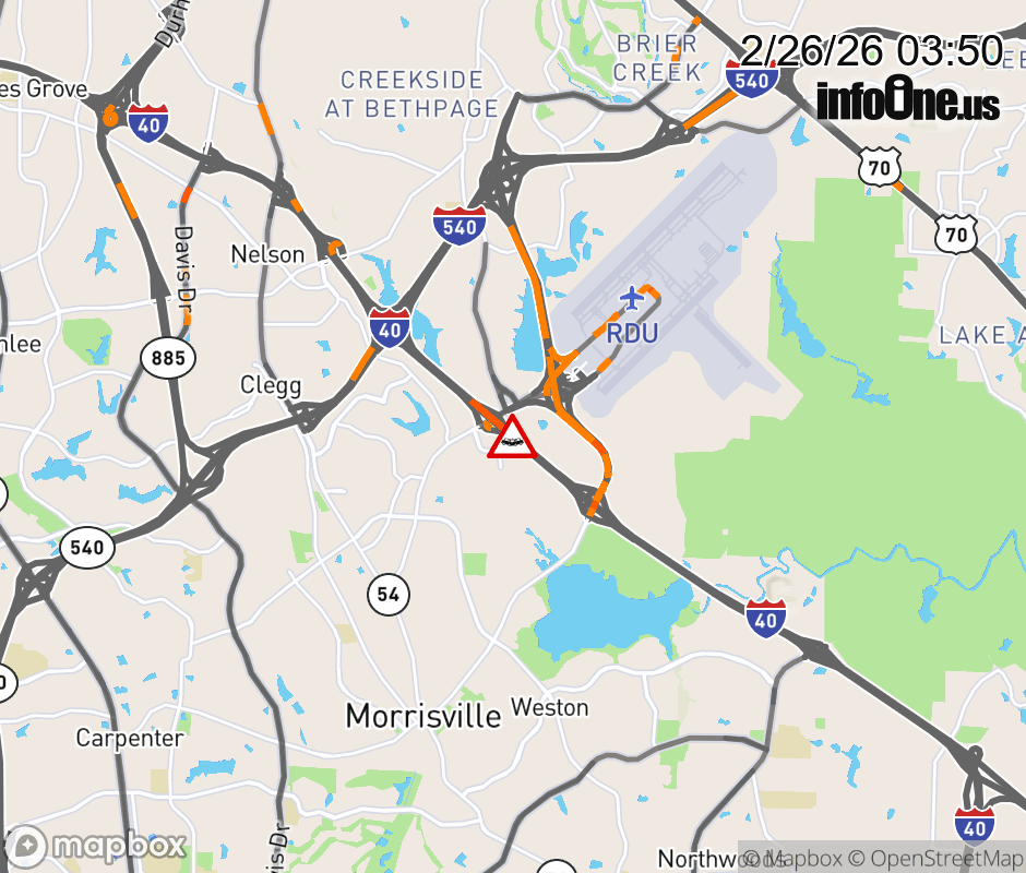 The three left lanes are closed near Exit 284 ( Airport Boulevard ). Updated: Thu 2/26/26 3:50 AM EST ![]() Updated: Thu 2/26/26 3:50 AM EST |