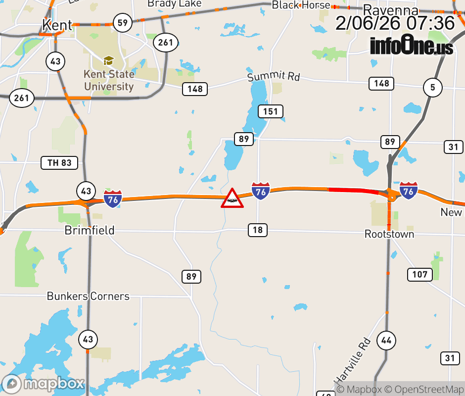 Expect lane closures on I-76 East beyond SR-43, due to a crash. ![]() |