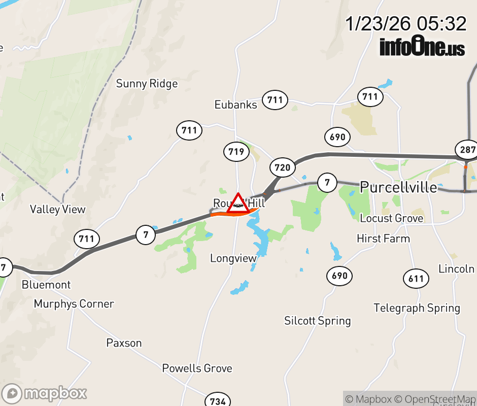 On BUS VA-7 in the County of Loudoun, in the vicinity of New Cut Rd; Rt. 719N/S (Loudoun County), near Leesburg Pike, motorists can expect delays due to a vehicle crash. The east left lane is closed. ![]() |