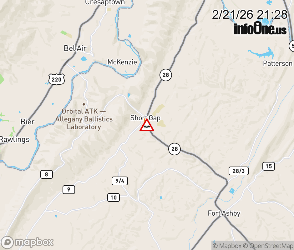 Vehicle Crash on WV 28 (Frankfort Hwy & Cherish Ln). ![]() |