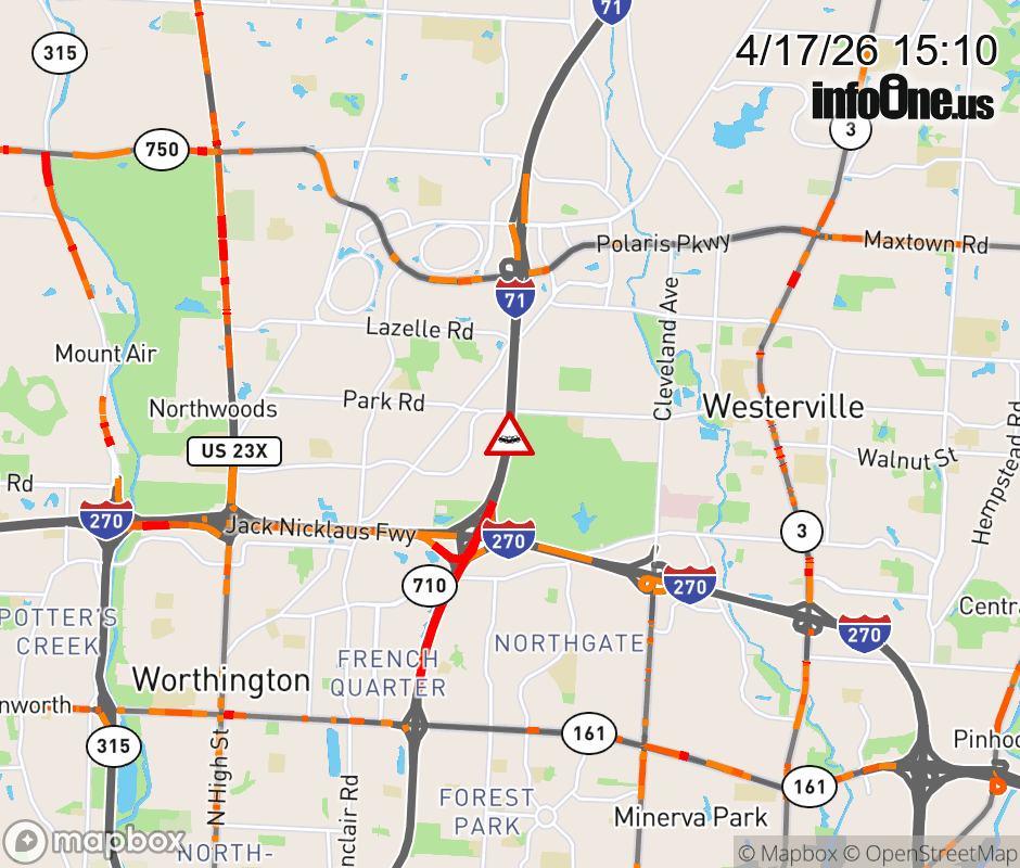The right shoulder is blocked on I-71 North beyond I-270 (North Side), due to a crash. Updated: Fri 4/17/26 3:10 PM EDT ![]() Updated: Fri 4/17/26 3:10 PM EDT |