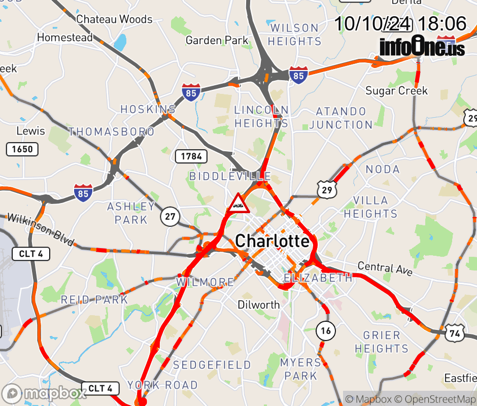 The left center lane is closed past Exit 10 (W Trade St). ![]() |