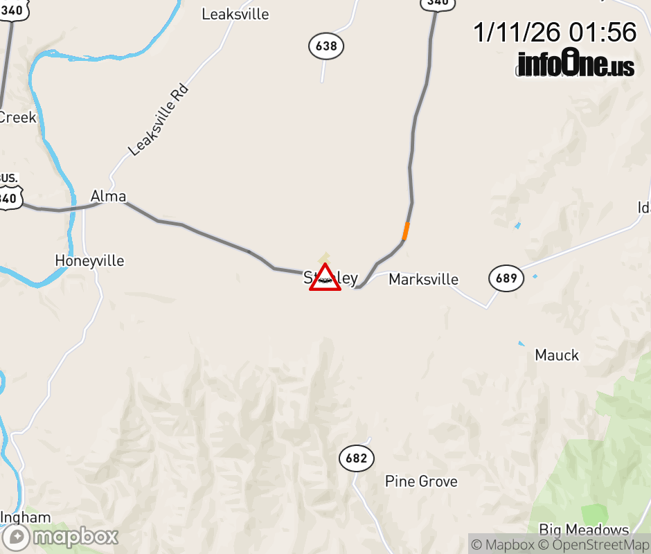 On Rt. 638 in the County of Page, in the vicinity of E Main St; BUS US-340N/S;HONEYVILLE AVENUE, motorists can expect delays due to a vehicle crash. All north lanes are closed. All south lanes are closed. ![]() |