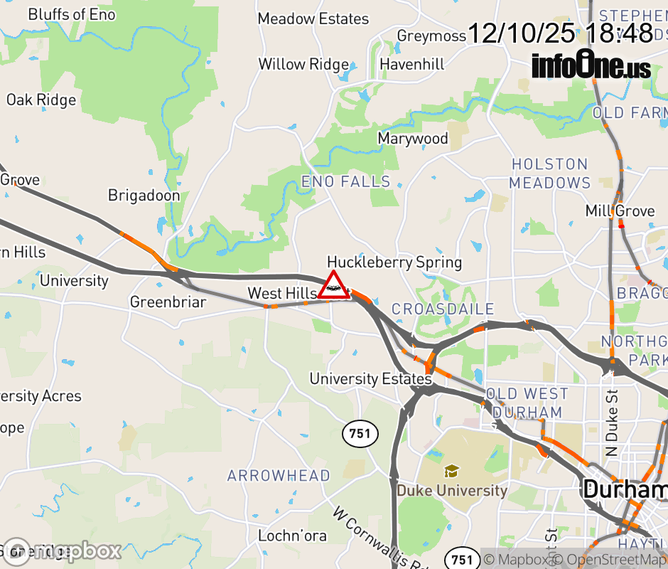 The left lane is closed near Exit 172 (NC-147). ![]() |