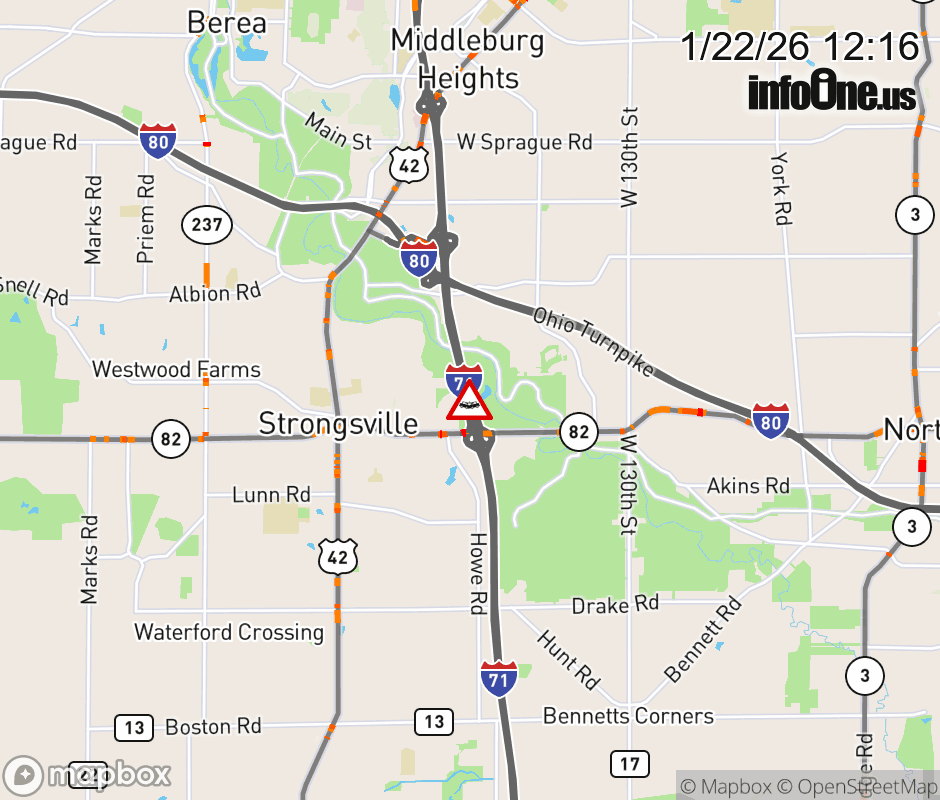 The right shoulder is blocked on I-71 North beyond SR-82/Royalton Rd, due to a crash. ![]() |