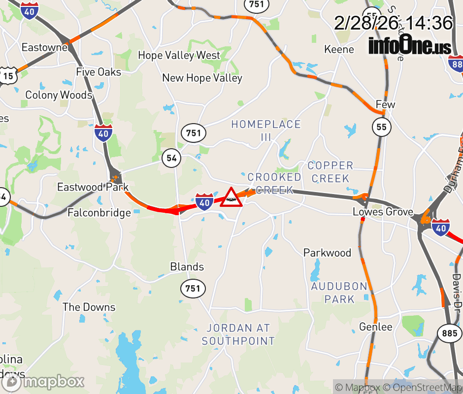 The left lane is closed at Exit 276 (Fayetteville Rd). Updated: Sat 2/28/26 2:36 PM EST ![]() Updated: Sat 2/28/26 2:36 PM EST |