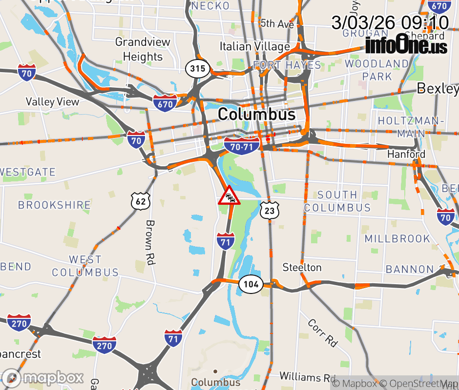 The left shoulder is blocked on I-71 North beyond Greenlawn Ave, due to repairs/maintenance. ![]() |