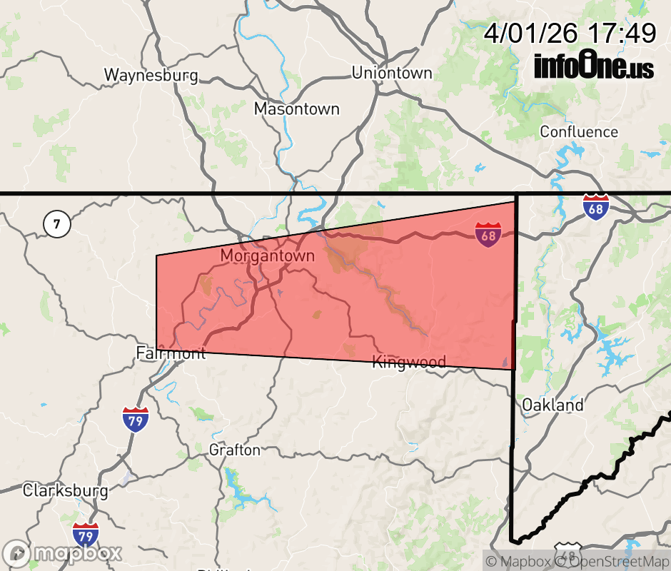 Canceled 4/1/26 5:54 PM Severe Thunderstorm Warning issued April 1 at 5:48PM EDT until April 1 at 6:45PM EDT by NWS Pittsburgh PA SVRPBZ The National Weather Service in Pittsburgh has issued a * Severe Thunderstorm Warning for... Northern Preston County in northeastern West Virginia... Northeastern Marion County in northern West Virginia... Eastern Monongalia County in northern West Virginia... * Until 645 PM EDT. * At 548 PM EDT, a severe thunderstorm was located near Winfield, or near Fairmont, moving east at 30 mph. HAZARD...60 mph wind gusts and quarter size hail. SOURCE...Radar indicated. IMPACT...Hail damage to vehicles is expected. Expect wind damage to roofs, siding, and trees. * Locations impacted include... Morgantown, Fairmont, Westover, Kingwood, Barrackville, Granville, Brookhaven, Rivesville, Grant Town, Reedsville, Masontown, Albright, Brandonville, Bruceton Mills, Laurel Run, Cheat Lake, Browns Chapel, Valley Point and Booth. ![]() |