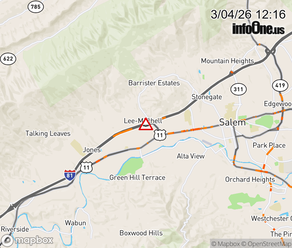 On I-81 North at mile marker 137 in the County of Roanoke, motorists can expect delays due to a tractor trailer crash. Updated: Wed 3/4/26 12:16 PM EST ![]() Updated: Wed 3/4/26 12:16 PM EST |