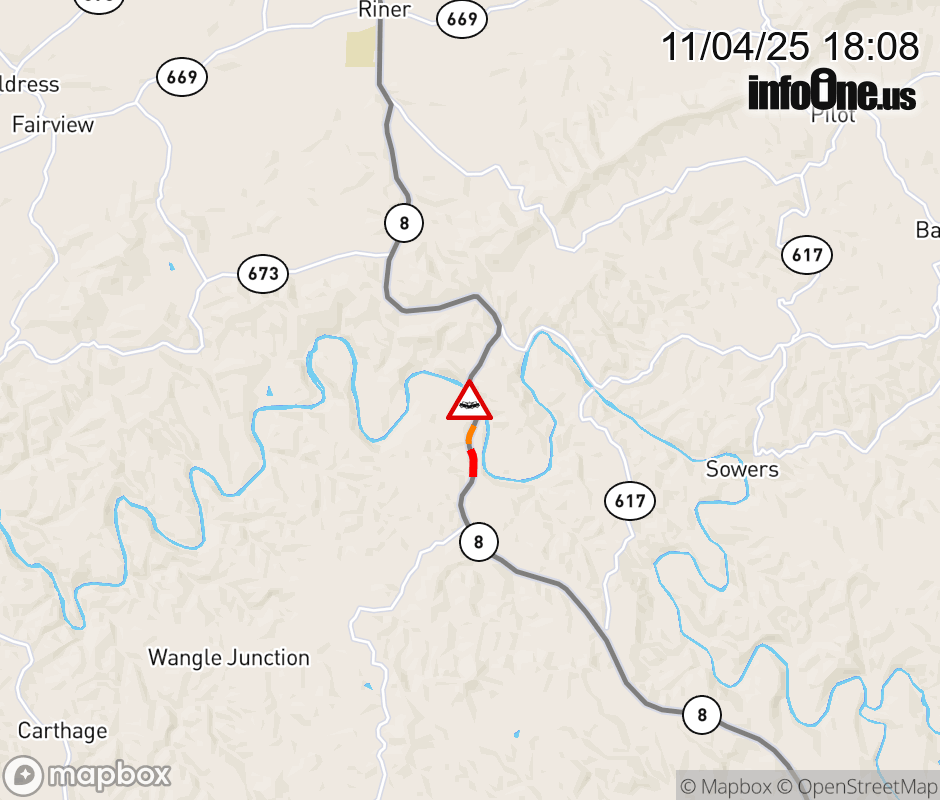 On VA-8 North in the County of Floyd, in the vicinity of Codys Ridge Rd NE; River Ln NW; Rt. 863E/W (Floyd County), motorists can expect delays due to a vehicle crash. Lane closures exist. ![]() |