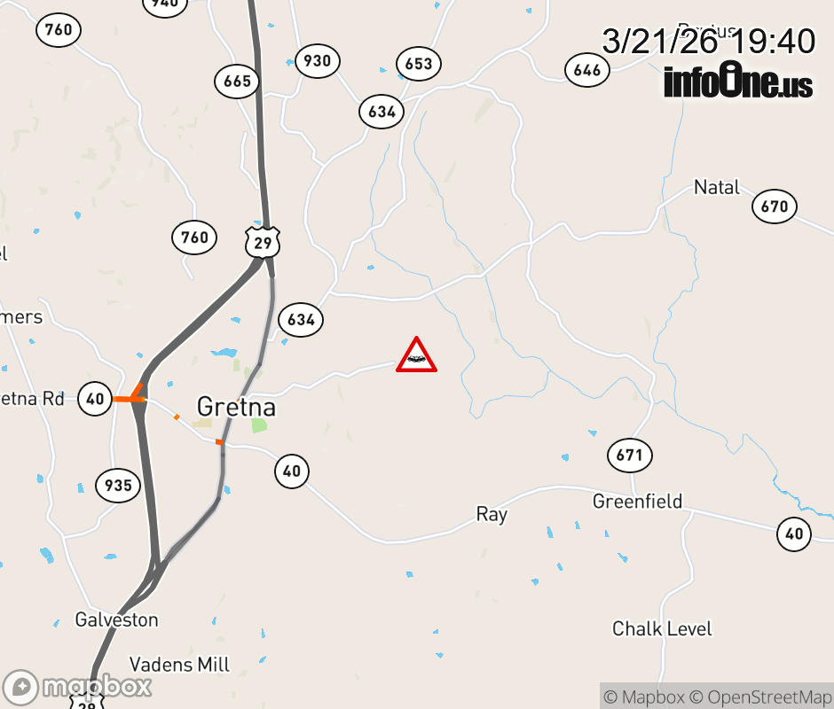 On Rt. 792 East in the County of Pittsylvania, in the vicinity of Rockford School Rd; Rt. 665E/W (Pittsylvania County), motorists can expect delays due to a vehicle crash. Lane closures exist. Updated: Sat 3/21/26 7:40 PM EDT ![]() Updated: Sat 3/21/26 7:40 PM EDT |