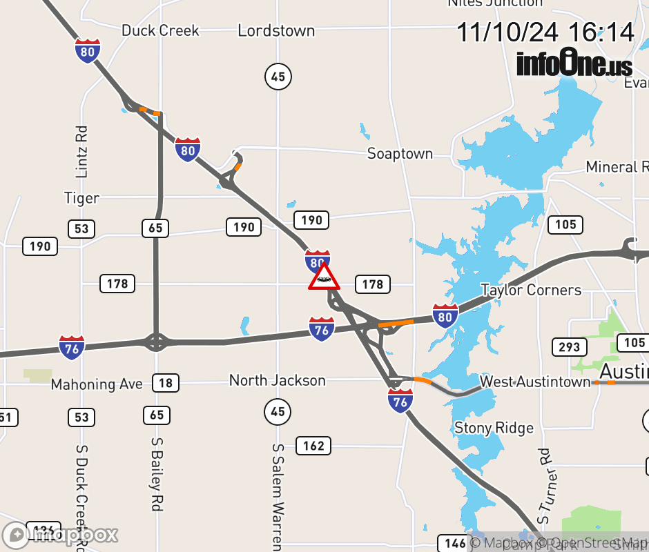 Expect lane closures on I-80 West (Ohio Turnpike) beyond I-76, due to a crash. ![]() |
