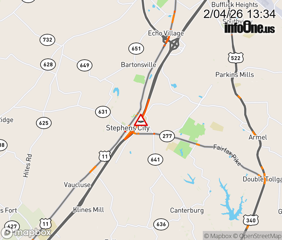 On I-81 North at mile marker 307.6 in the County of Frederick, motorists can expect delays due to a vehicle crash. Updated: Wed 2/4/26 1:34 PM EST ![]() Updated: Wed 2/4/26 1:34 PM EST |