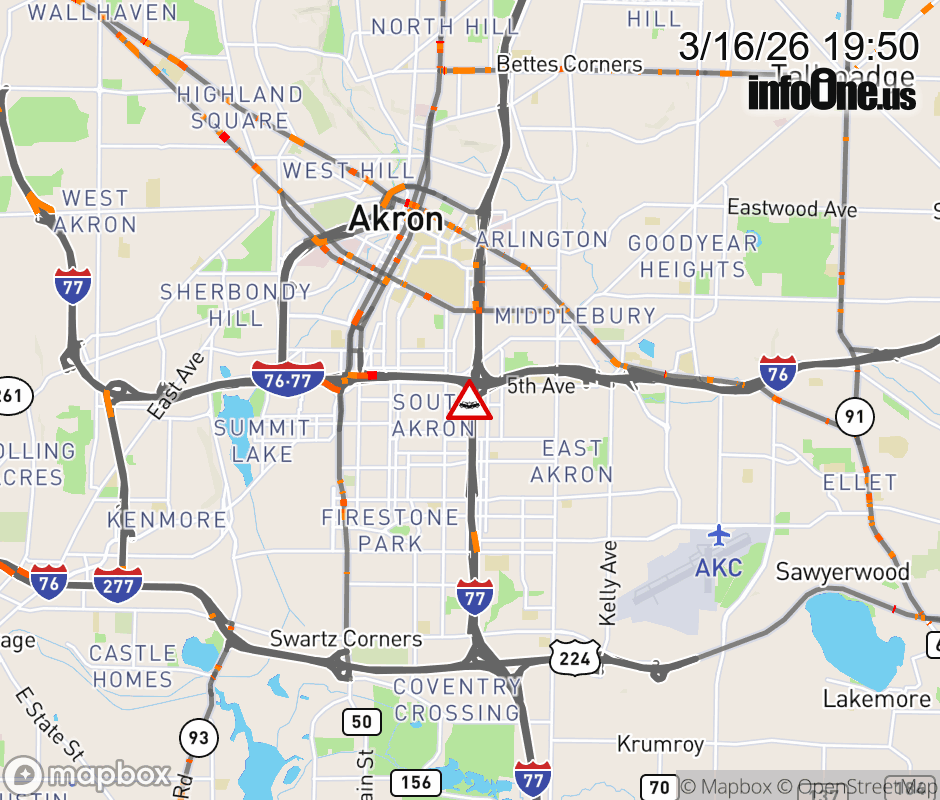 All lanes are blocked on Ramp I-76 West to I-77 South, due to a crash. ![]() |