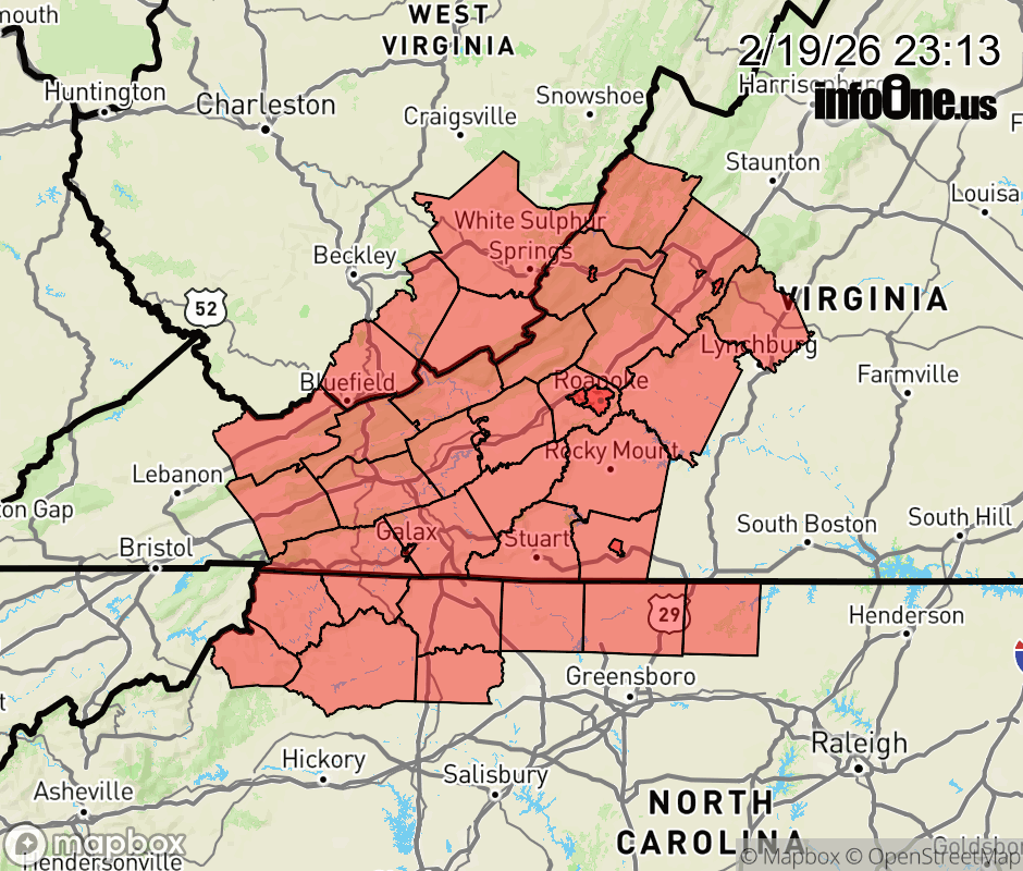 Canceled 2/20/26 4:00 AM Special Weather Statement issued February 19 at 11:11PM EST by NWS Blacksburg VA Thanks to the rain and wet ground, along with light wind, fog will be more prevalent through early Friday morning. Visibilities will will be under a quarter mile at times. Those traveling through early Friday morning will need slow down, use your low beams, and allow more braking distance between you and the vehicle ahead of you. ![]() |