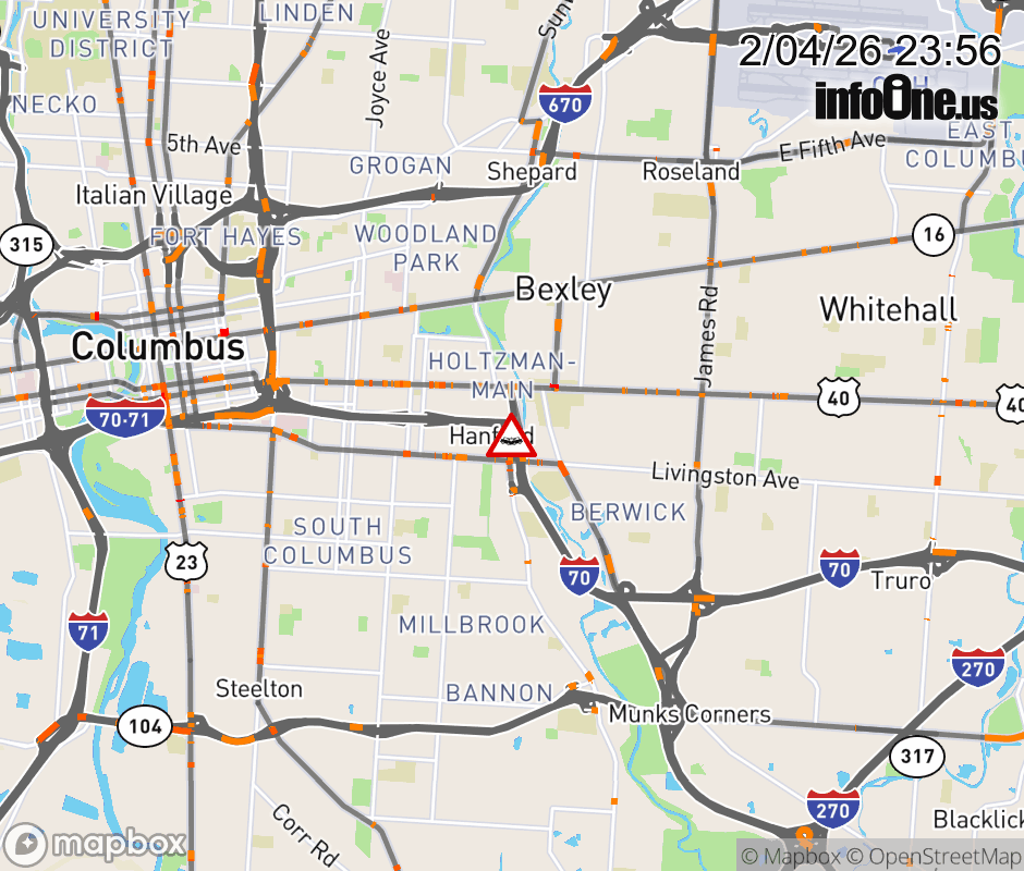 The right lane is blocked on I-70 East at Main St, due to a crash. Updated: Wed 2/4/26 11:56 PM EST ![]() Updated: Wed 2/4/26 11:56 PM EST |
