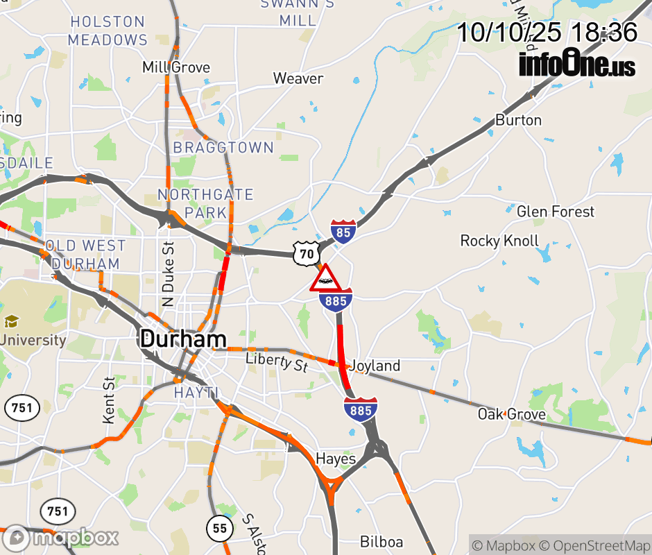 Location: I-885N at MM 13, NC Vehicle Crash.