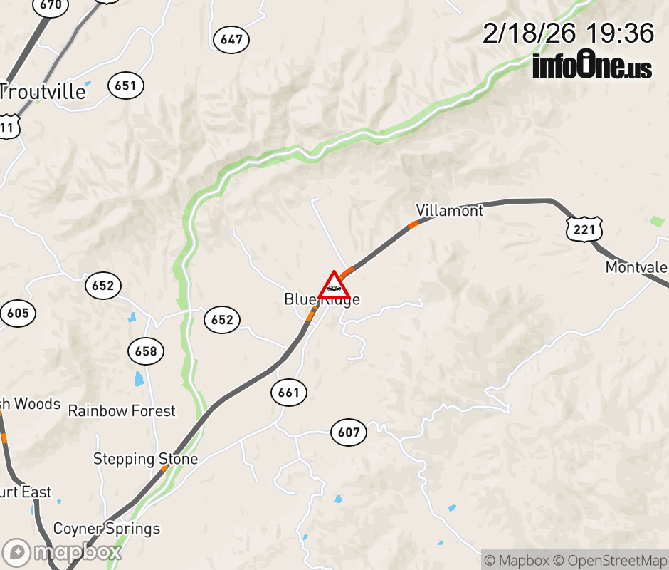 On US-460 in the County of Botetourt, in the vicinity of Colonial Rd; Rt. 661N/S (Botetourt County), motorists can expect delays due to a vehicle crash. The west right lane and right shoulder are closed. ![]() |
