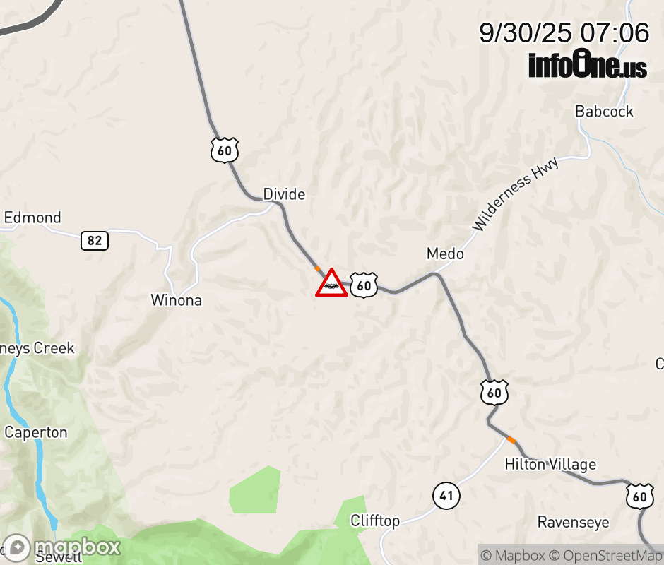Canceled 9/30/25 9:10 AM Location: US-60 at MM 31.94, WV Accident.