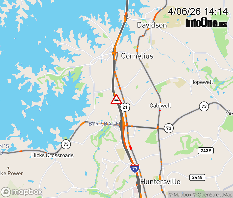 Crash on I-77 North Bound near exit 25, Sam Furr Rd. The right lane is blocked. ![]() |